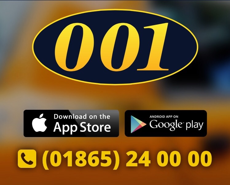 About us:001 operates an ever growing fleet of private hire vehicles serving Oxford (01865 24 00 00), Abingdon (01235 933 933), Wheatley (01865 87 47 87) and now Bicester (01869 201201)For many years we have strived to be the number one choice for taxis throughout Oxfordshire and able to take clients to anywhere within the UK. Using the latest GPS technology, we are able to track our vehicles and our advanced computer system keeps us at the forefront of efficient transportation services throughout Europe.