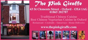 The Pink Giraffe Chinese Restaurant - Oxford has many years experience in the Restaurant business, and focuses on providing high quality Chinese cuisine to guests throughout Oxford. The business is located a minutes brisk walk from Oxford's Magdalen Bridge - a cosy Chinese restaurant serving all the usual favourites with a twist of Japanese, Thai, Cantonese and Szechwan flavour in various dishes.